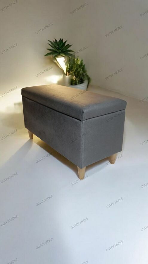 Pufa z pojemnikiem o wymiarach 80×35Wysokość około 45cm. Tkanina monolith 85, nóżki drewno bukowe, siłownik gazowy wspomagający otwieranie.